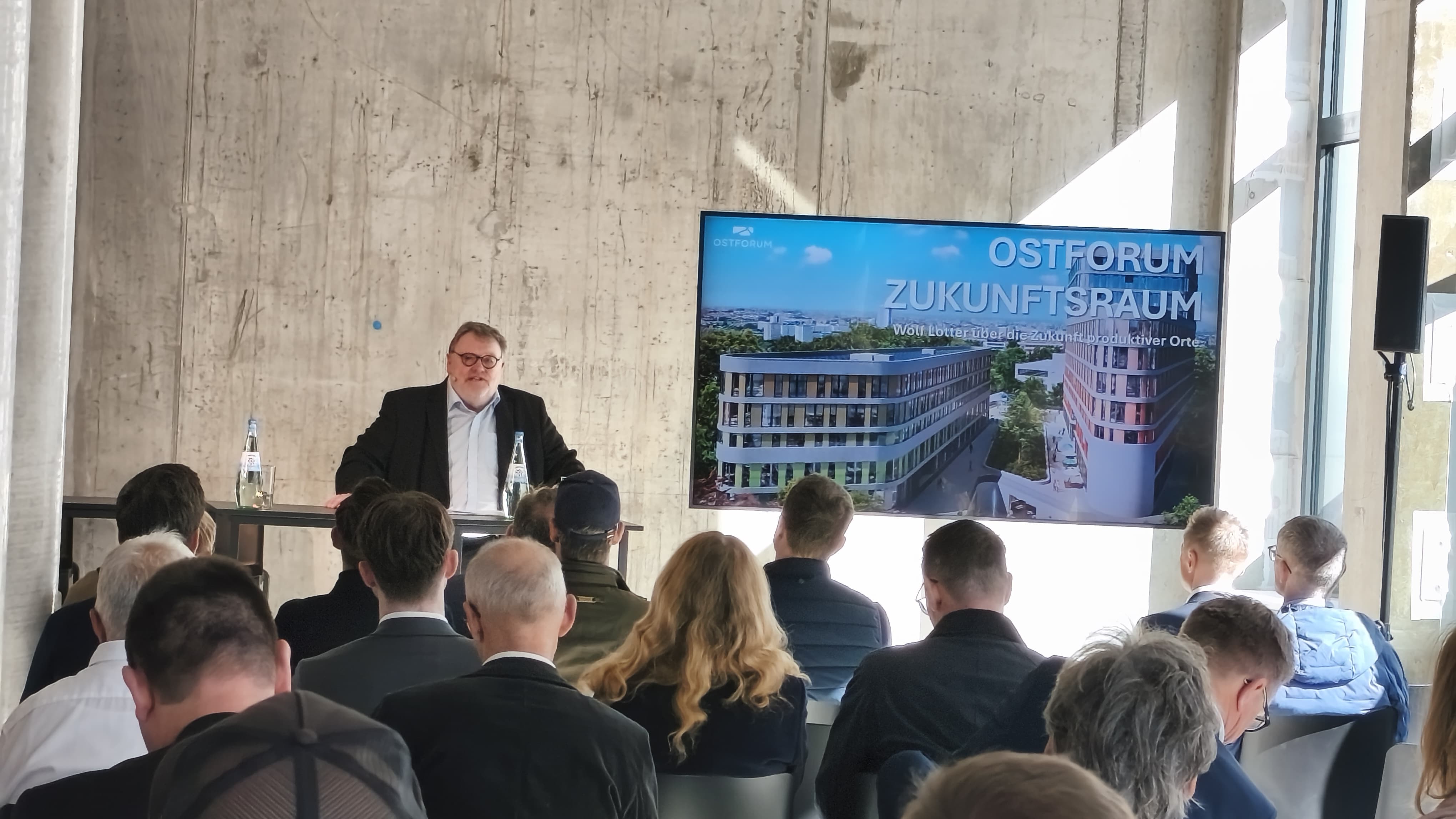 Interessant wird es dort, wo diese Gedanken auf konkrete Projekte treffen. Im OSTFORUM gibt es bereits seit Oktober 2025 einen ALDI, knapp 50 Mietwohnungen gehen im Sommer in die Vermietung, weitere Nutzungen werden geprüft, das Quartier entwickelt sich schrittweise. Sein Fazit ist entsprechend klar: „Wir können unseren Wohlstand nur verteidigen, wenn der Kopf die Routine schlägt.“ Das gilt auch für urbane Quartiere, vielleicht auch besonders für sie. Denn Flexibilität auch im Sinne einer Zweitnutzung gehört dazu. Trotzdem galt auch dafür der Satz von Wolf Lotter: „Es wird viel zu oft eine Sau durchs Dorf getrieben, damit man sich spart vorzustellen, wie das Dorf aussehen soll.“ Also: Nicht die endgültige Nutzung steht im Mittelpunkt, sondern die Fähigkeit eines Gebäudes, sich an veränderte Anforderungen anzupassen.