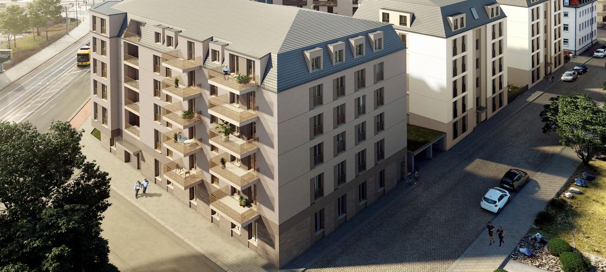 Attraktive Mikrolage und viel Nachhaltigkeit kennzeichnen das neue Quartier in Dresden